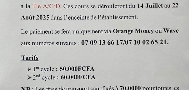 Cours de vacances 2025 Cour du soir COPEMA (Collège Catholique Père Monti d’Abidjan) est un établissement secondaire mixte fondé et géré par les réligieux de la Congrégation des Fils de l’Immaculée Conception (CFIC) dans l’Eglise …